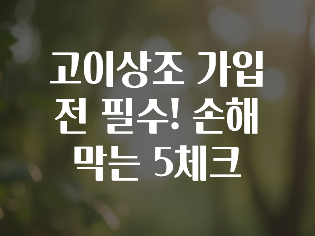 🤔 가입 전 꼭 알아야 할 고이상조! 손해 막는 5가지 체크포인트 🌟