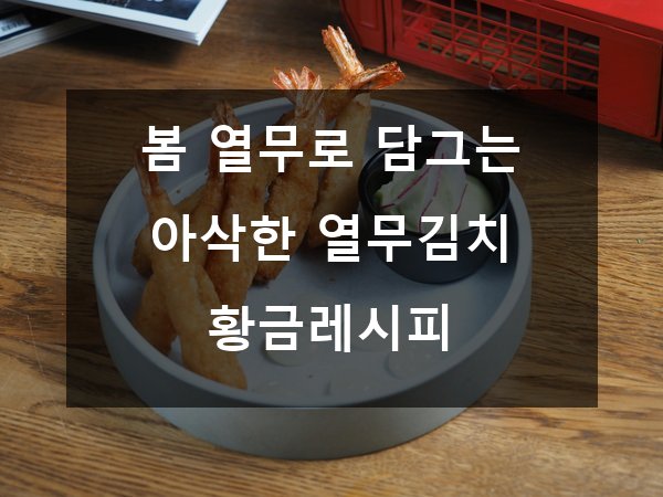 안녕하세요! 봄바람 살랑살랑 불어올 때면 입맛 당기는 그 김치, 바로 아삭아삭한 열무김치가 생각나죠? 🤤 여러분 혹시, 봄철 싱그러운 열무로 집에서 제대로 된 열무김치를 담가 보신 적 있나요? 오늘은 봄 열무를 이용해 누구나 쉽고 맛있게 만들 수 있는 황금 레시피와 꿀팁을 낱낱이 알려드릴게요! 💚