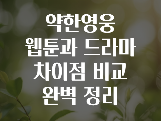 🎬 요즘 웹툰 원작 드라마가 큰 인기를 끌고 있죠! 특히 『약한영웅』은 원작 웹툰의 매력과 드라마의 현실성이 어떤 식으로 다른지 궁금해하는 분들이 많습니다. 🤔 “웹툰과 드라마, 과연 무엇이 다른가요?”라는 질문에 명확하게 답해드리기 위해, 이번 글에서는 약한영웅의 웹툰과 드라마 버전을 집중 비교하며 완벽하게 분석해보겠습니다! 🌟